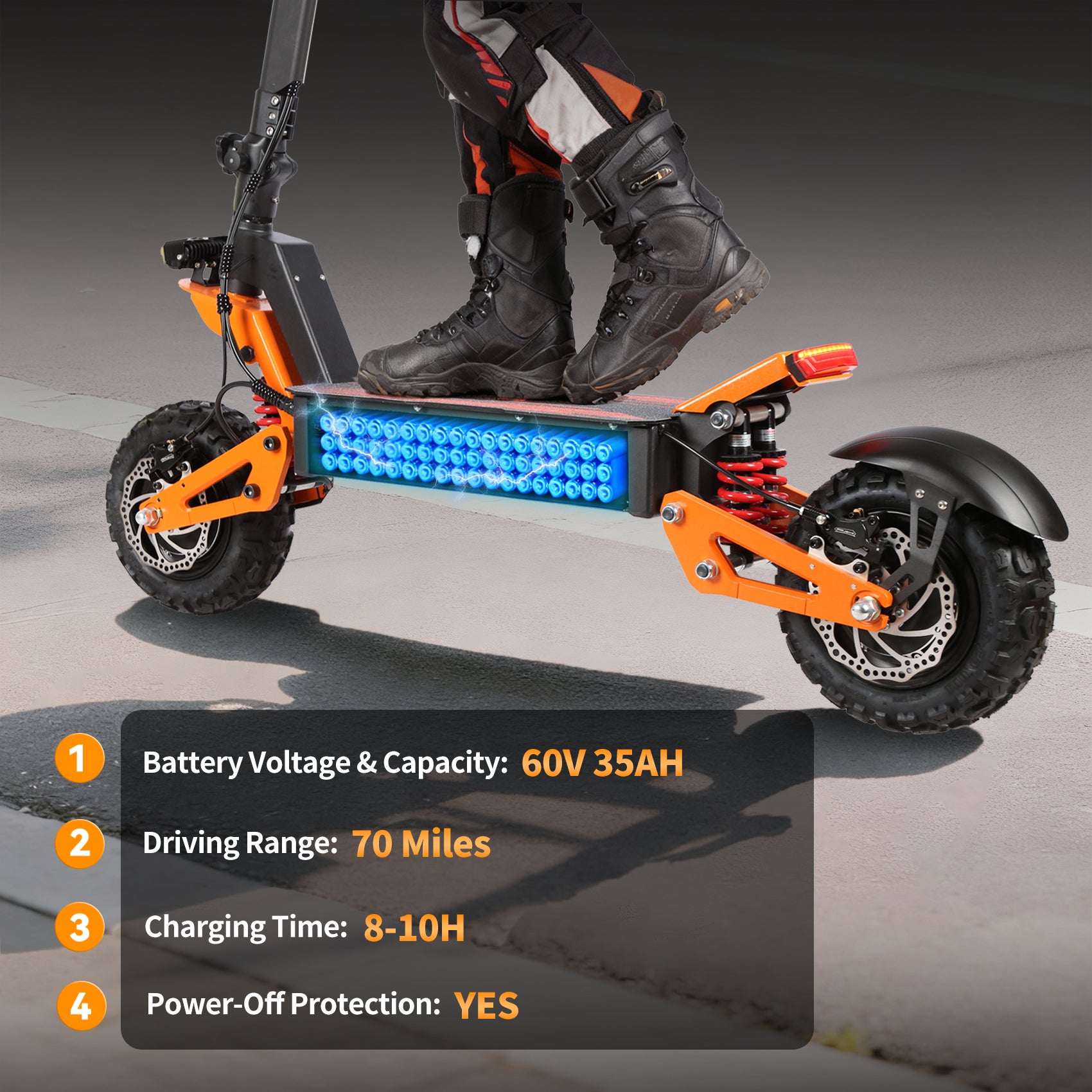 Powerful Dual Motors 60V 6000W, Max speed 85km/h